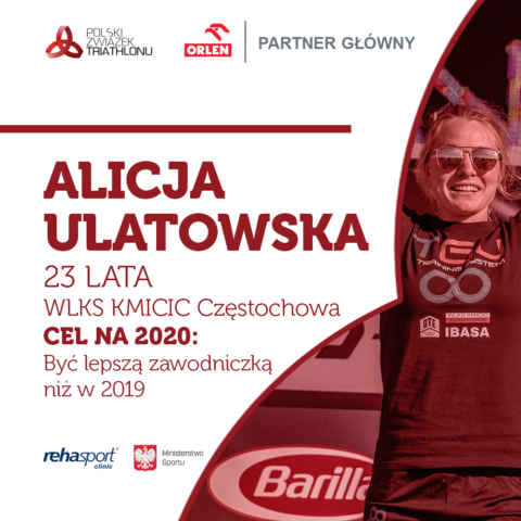 Alicja postawiła sobie bardzo trudny cel na sezon 2020. Chce być lepszą zawodniczką niż w 2019. W minionym sezonie została Mistrzynią Świata Elity oraz U23 w Aquathlonie. Do tego sukcesu Alicja dorzuciła bardzo dobre starty w triathlonie. 5 miejsce w Olsztynie, 4 miejsce w Malmo, 6 miejsce w Lozannie. To tylko niektóre sukcesy Alicji w 2019.